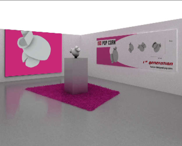 Published May 29, 2014 at 720 × 576 in ISO Pop Corn – 1st Generation human designed pop corn Installation ( prototype – teaser, billboard, plinth, pink parpet ‹ Return to post